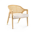 The Edward Lounge Chair cuts a fine figure in Cape Lilac Mahogany, with a natural finish that underscores the grain of the wooden frame. Its back boasts a screen of lacquered hand-tied caning, with a form-fitting curve to ensure ultimate comfort. Metallic accents highlight detail, with hand-cast brass sabots and armcaps providing a luxurious finish touch. The Edward is an ideal choice for a sitting room, and would fit well in anything from an urban loft space to a rustic country home.
