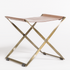 Tanned top grain leather seat with antique brass criss cross legs. Perfect piece to add stylish seating!
