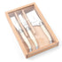Languiole is a third-generation family run company from the mid-Pyrenees region of France specializing in coutellerie (cutlery), their style is world renowned for tradition and quality. Crafted from high-quality stainless steel with an acrylic handle, each with the iconic Laguiole bee motif at the top of the handle, these pieces make a lively addition to any dining experience.