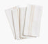 The Cambria napkins are a white base cotton cloth with subtle colored stripes and have a finished edge.