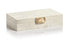 This white bone box with a brass knob, is the perfect decorative storage box for your home.